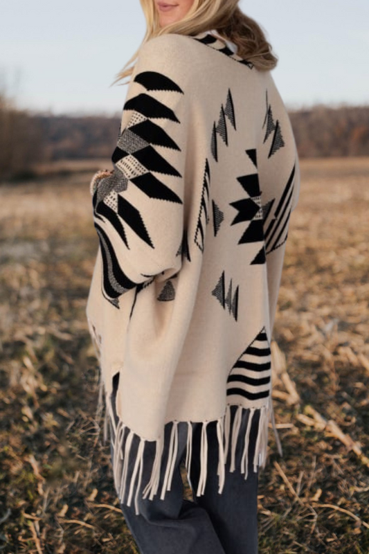 Aztec Fringe Long Sleeves Tassel Cardigan