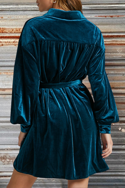 Collared Button Down Velvet Shirt Dress