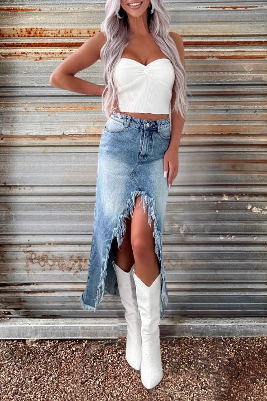Cowgirl Distressed Denim Skirt
