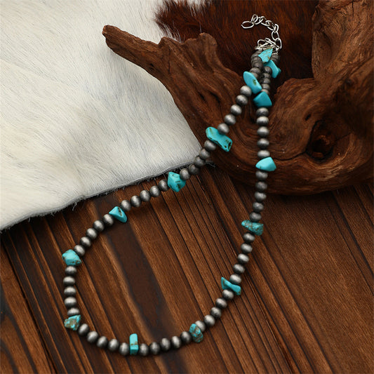 Turquoise Stone Glass Bead Necklace