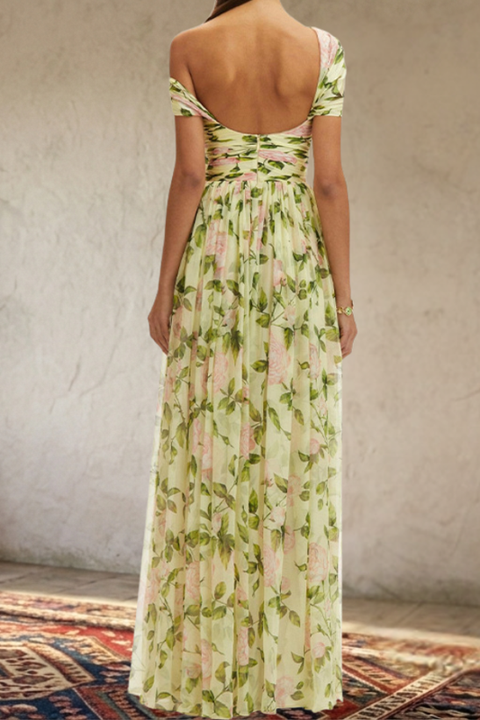 Floral Print Lantern Sleeve Chiffon Maxi Dress