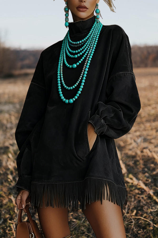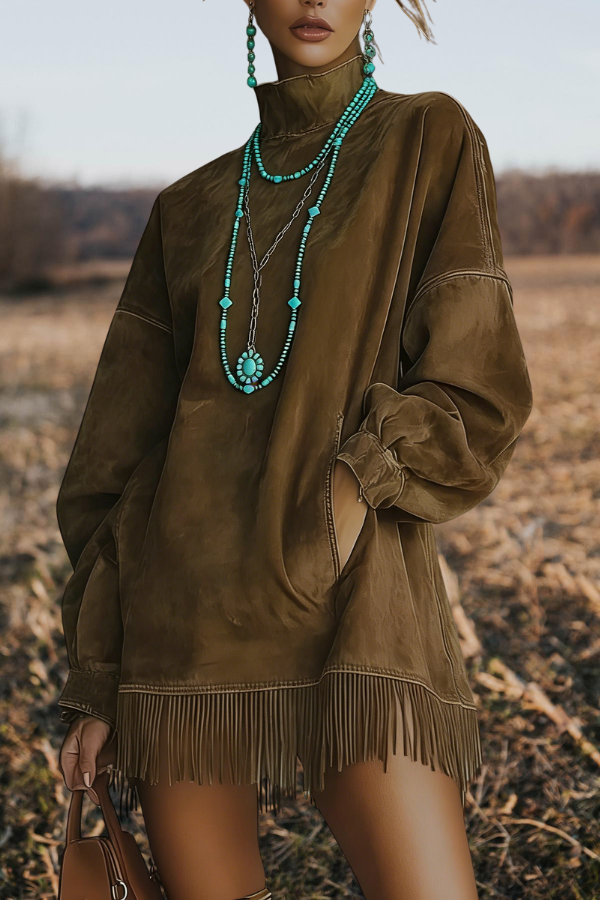 Slip into this luxe velour tunic! Mock neck, oversized fit, billowy sleeves, and swaying fringe hem blend cozy comfort with boho flair. Perfect for pairing with leggings or jeans—effortlessly stylish for casual outings or relaxed days!