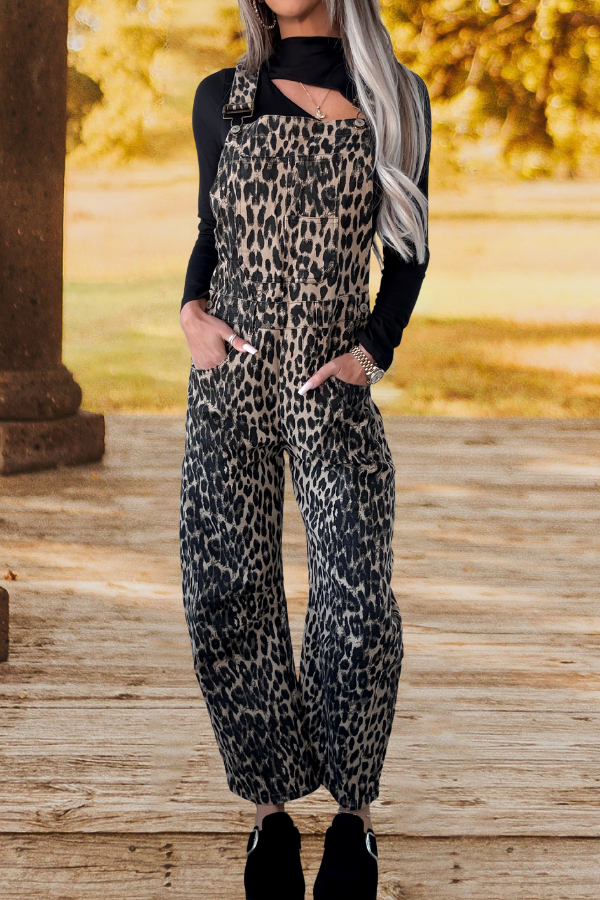 Make a bold statement with these high-waisted leopard-print overalls, featuring a relaxed wide-leg silhouette and adjustable shoulder straps. Pair with a sleek black turtleneck for a chic, edgy look—ideal for adding retro flair to your everyday casual wardrobe!